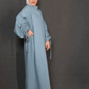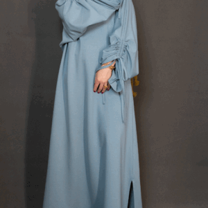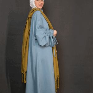 تم تنفيذها بخامة ناعمة وسلسة بلون تركواز ولون اصفر ضبابي أنيق، مع لمسة مميزة على الأكمام تجمع بين الكشكشة وربطة قابلة للتعديل، تضيف حركة أنثوية ناعمة وسحر بسيط لكل إطلالة.