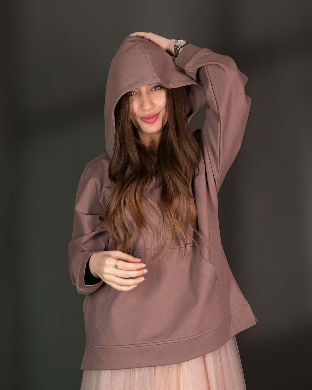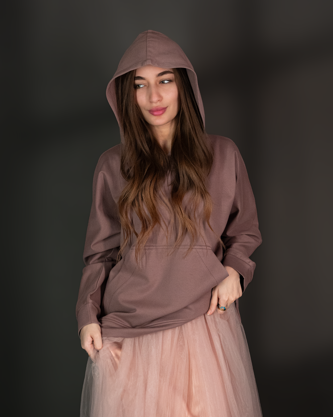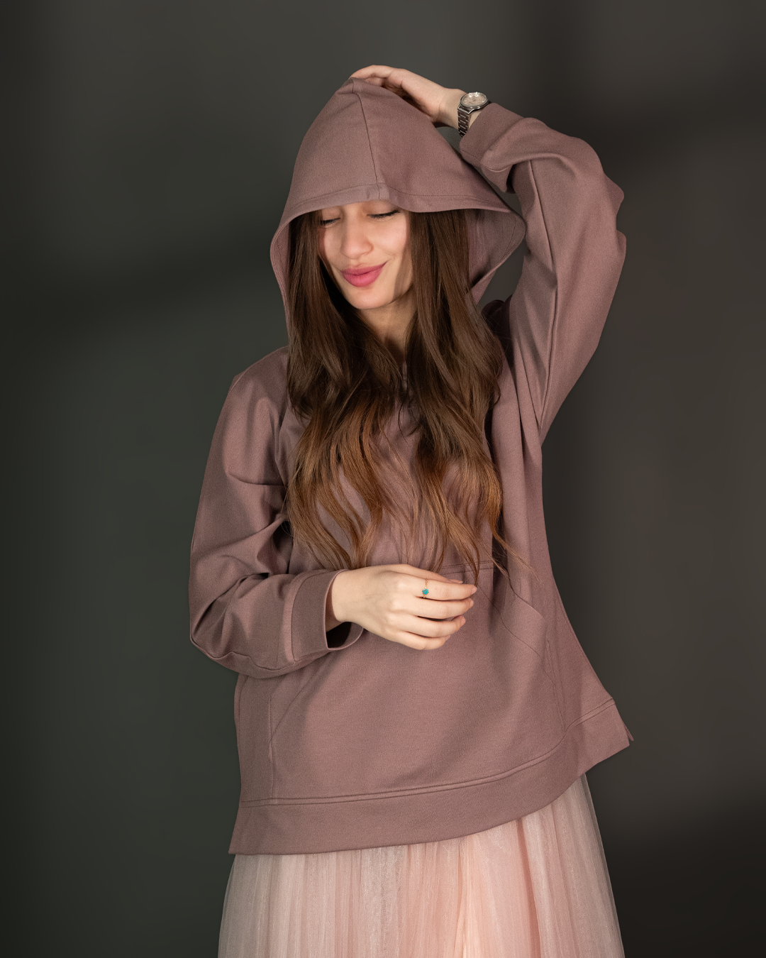 هودي بقصّة مريحة (Oversized Hoodie) بخامة قطنية ناعمة وعملية، تصميمه بسيط ومرتب مع جيب أمامي وياقة هود تعطي طابع كاجوال مريح يناسب كل يوم.
