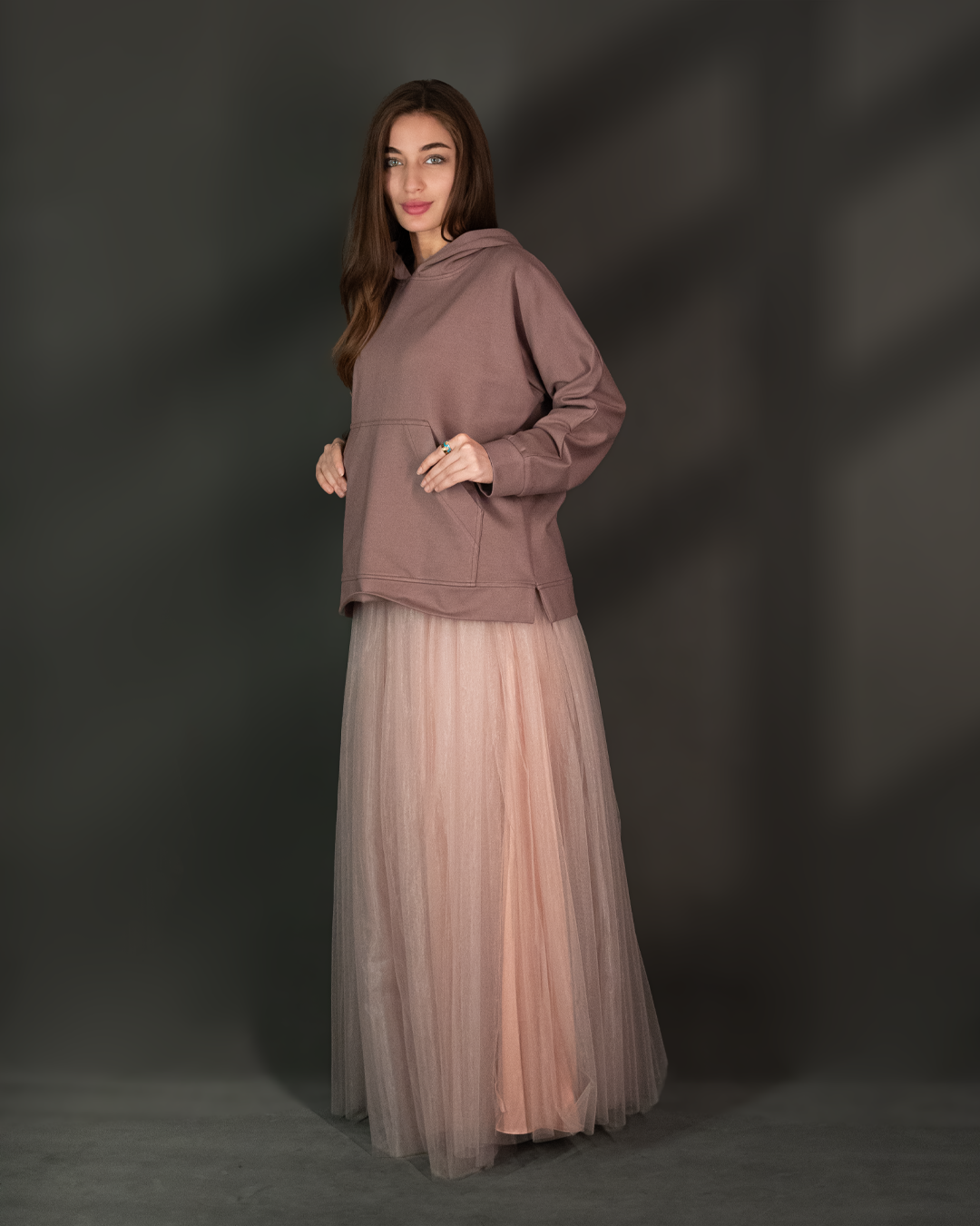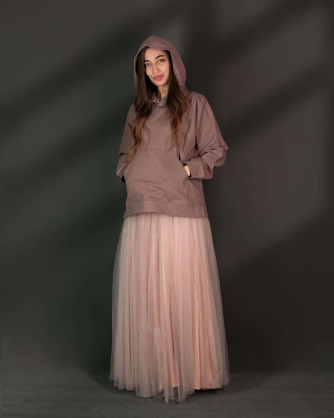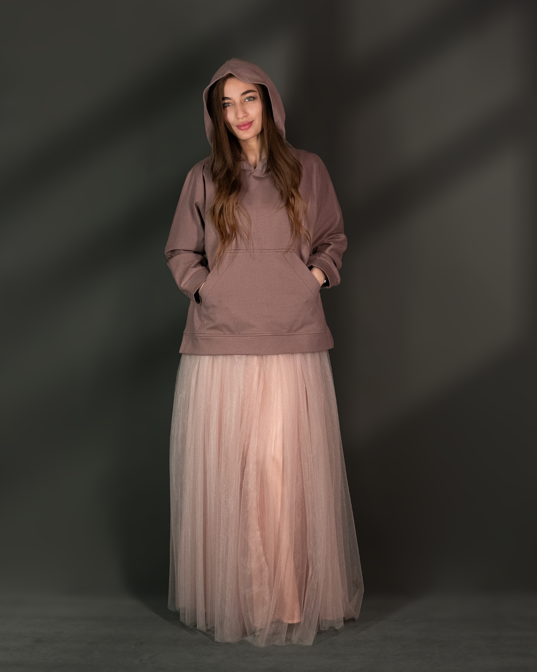 هودي بقصّة مريحة (Oversized Hoodie) بخامة قطنية ناعمة وعملية، تصميمه بسيط ومرتب مع جيب أمامي وياقة هود تعطي طابع كاجوال مريح يناسب كل يوم.