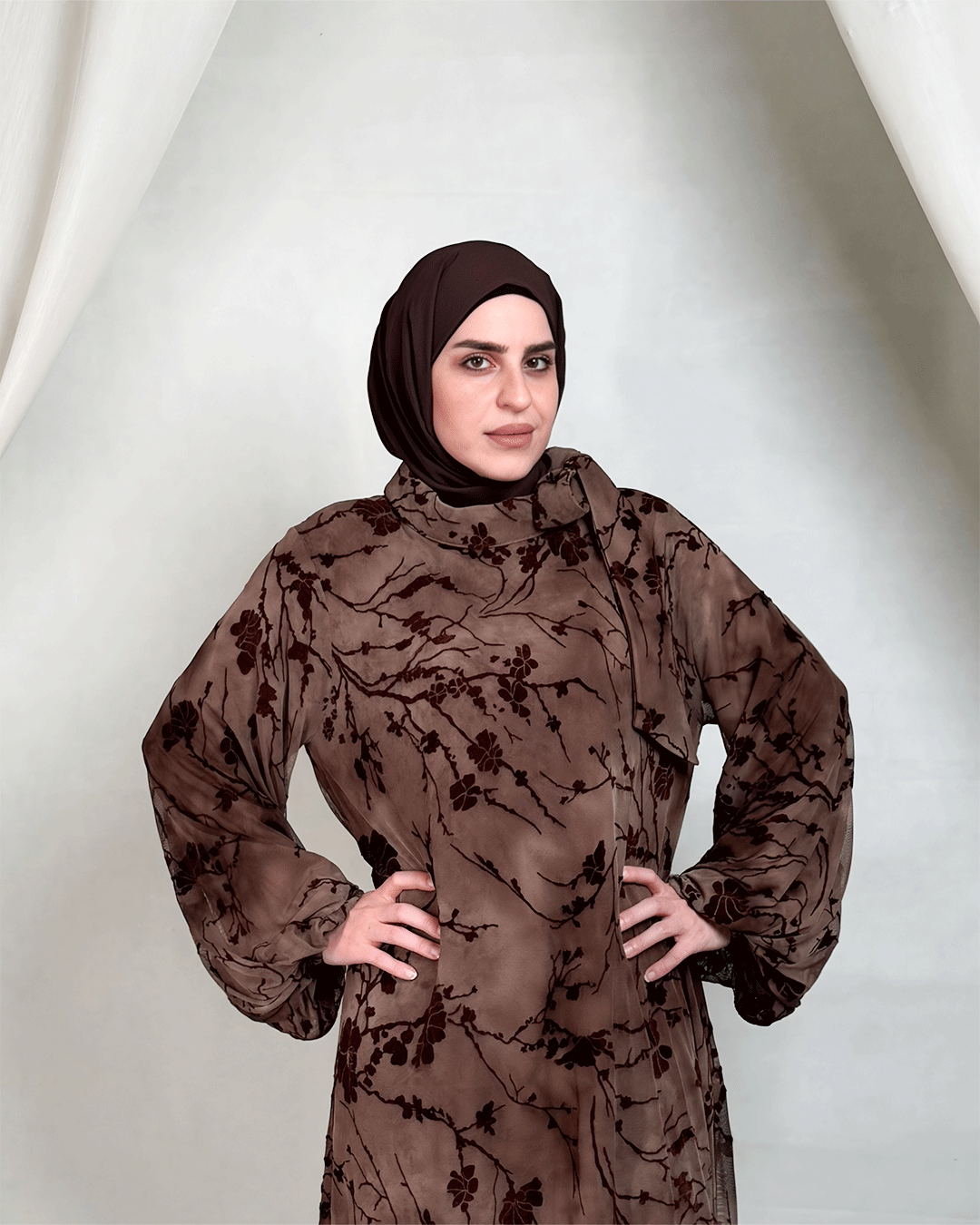 تصميم فريد يجمع بين البساطة والفخامة، هذا السوت باللون الأسود الكلاسيكي يتميز بتطريز يدوي متقن على شكل دوائر هندسية من خرز أسود لامع، يمنحك إطلالة أنيقة وملفتة دون تكلف.